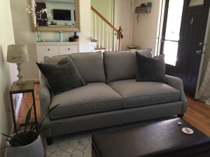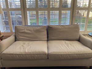 Our prior couch, our first ever couch purchase, lasted us 14 years. It was amazing but we wanted something a little different. Almost four years ago, we bought a Paxton sofa and two Paxton side chairs from Arhaus. They were gorgeous, and so spendy! In 2018 (excluding delivery and sales tax), we spent about $5000 for the couch and two chairs. You may remember them from the kitchen renovation from our old house below.
