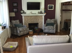 And then we decided we’d had enough. We hate sitting on it. It’s tough because we spent SO MUCH MONEY for it not to last how we wanted it to. We probably should have sold the couch and chairs before we moved to NC but in hindsight, I’m glad we didn’t because the pandemic delays would have had us sitting on the floor for a very long time! We recently ordered a new sofa that we *hope* holds up better for us over the long term. It’s a sofa with attached chaise that we think will fit into our space a little better. We’re keeping the side chairs for now and they’ll be repurposed in other areas of the house.