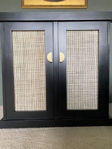 I thought I’d save money by doing some caning/rattan inside the door frames instead of wood. After a bit of research, the woven material was a bit more expensive than I thought it would be but we carefully calculated how much we’d need and I ordered it here. Spoiler alert – we had a little miscalculation (or miscommunication – we’re not sure which) and ended up having to order another roll of material, which ended up costing even more but, that’s the way it goes. Make sure you soak the rattan for about 30 minutes before you try to apply it – this makes the material more pliable and allows for a good, tight fight once it is attached and dries out again. We soaked ours in the bath tub 🙂 We painted the doors first before gluing the rattan onto the back of the door.