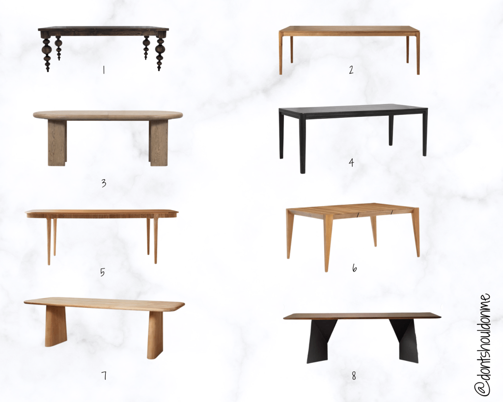So, I thought it would be fun to do a little roundup of the dining tables that have caught my eye in the past few months. I’ve seen number 7 on several popular websites. Will I end up with any of them? Who knows?! But it’s fun to “window shop” sometimes. Do you have a favorite?
