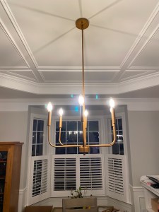 I have to admit, it was pretty tricky to install the light with one person – it was a very delicate balancing act but, with the exception of needing my 12 year old to hand me two screws, I was good. I did it! *Steps back to admire handiwork* @#$%#@! It’s way too close to the ceiling. Hmmmm. I email the company to ask if I can buy more downrods. And wait. Meanwhile, I’m all over Social Media bragging about my accomplishment because I’m a badass.