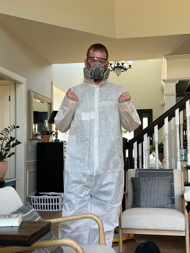 While I was away at a race, playing in the woods for hours on end, Husband painted the office! We decided to do a full color wash with the exception of the bookcases. We thought the paint sprayer would be the way to go despite how long the prep work takes. Husband tells me that was NOT the case, he really didn’t have anything good to say about his paint spraying experience – oops. But by the time I got home, he was done painting and we left the zipper closure up so the paint fumes and droplets would have time to dissipate.