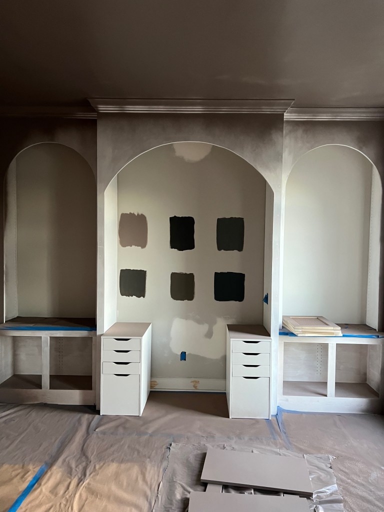 This week I’m working on painting the built-ins so we can hang the light fixture and I can hopefully get started on wallpaper next week. I’d be lying if I said I wasn’t nervous about it, it’s only my second time ever hanging wallpaper and of course, it’s $pendy so I feel like the stakes are high for me to get it right. No guts no glory, as they say! And hopefully we’ll get the pendant hung this weekend!