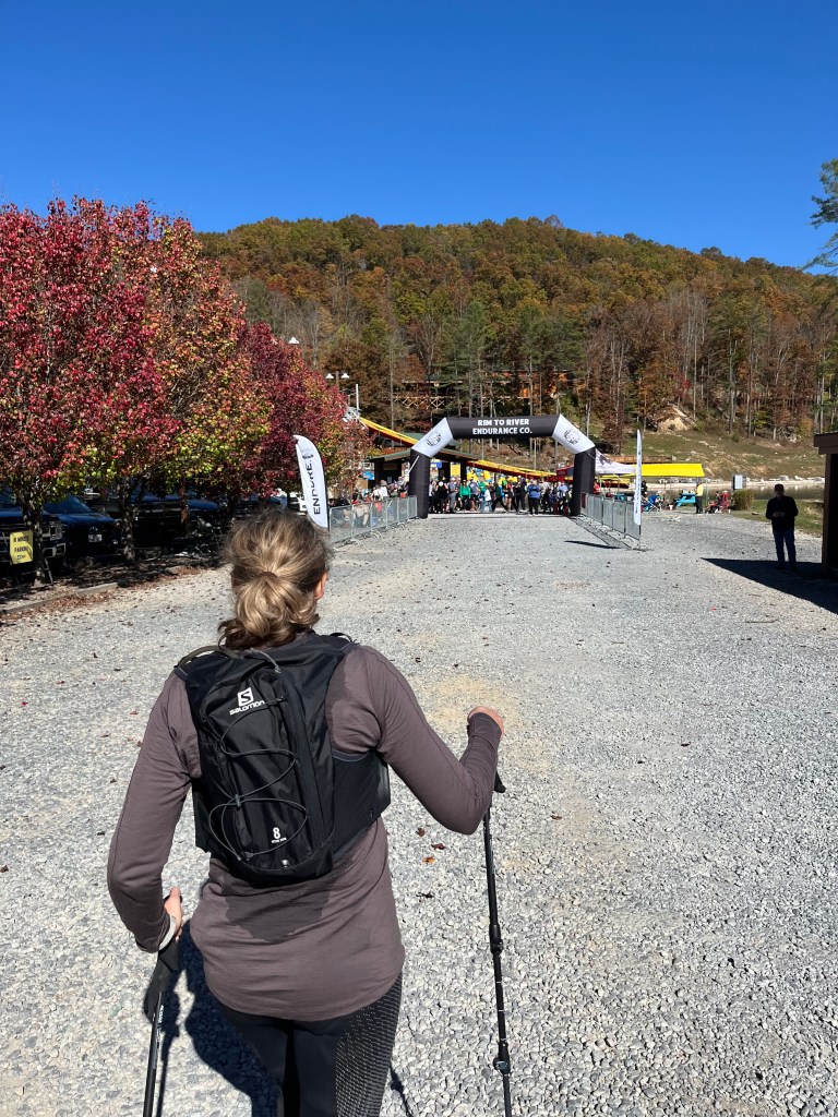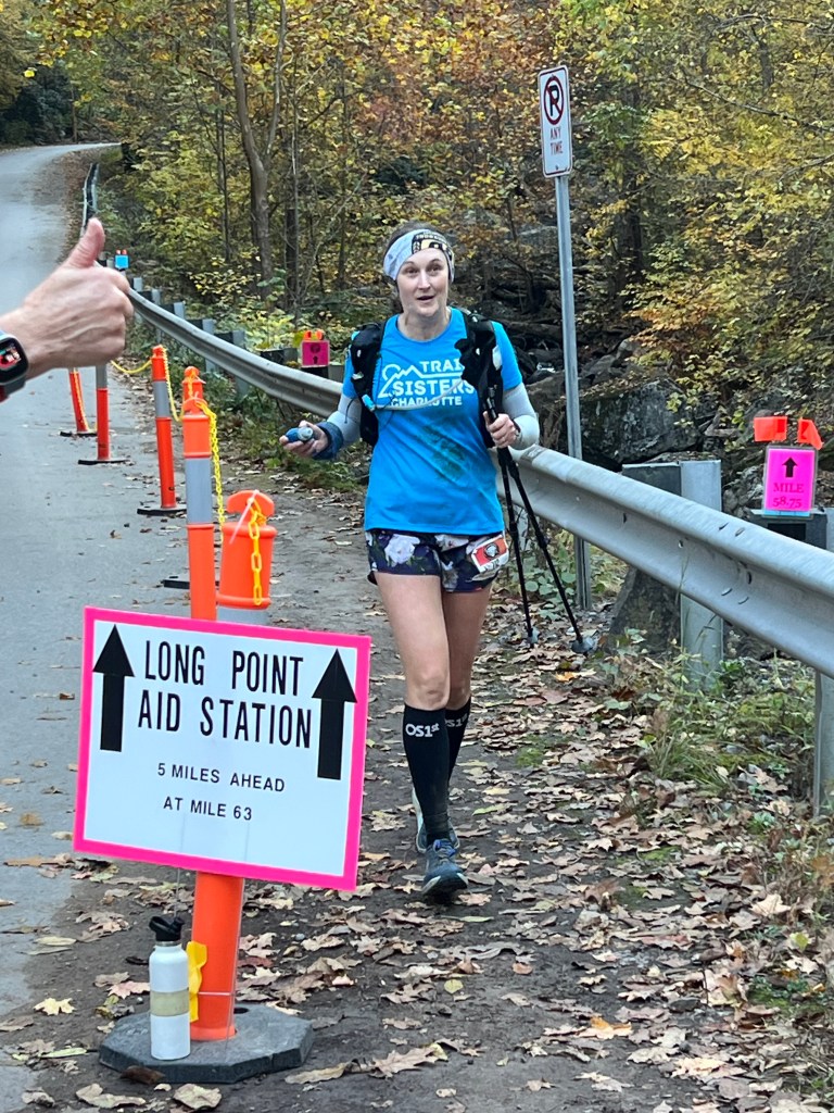 From Cunard to Long Point aid was only 5 miles but for some reason that stretch felt really long. We got to see a really gorgeous view of the New River Gorge bridge. I came across Sarah again sometime in this section. When we hit the Long Point aid station, I loaded up on pickles and pickle juice and had some broth. I also can’t thank the aid station volunteers there enough for having baby wipes! I grabbed one and wiped some of the crusted salt off my face. And “Angel Andrea” was there again! And once again, she changed out my bandaid.