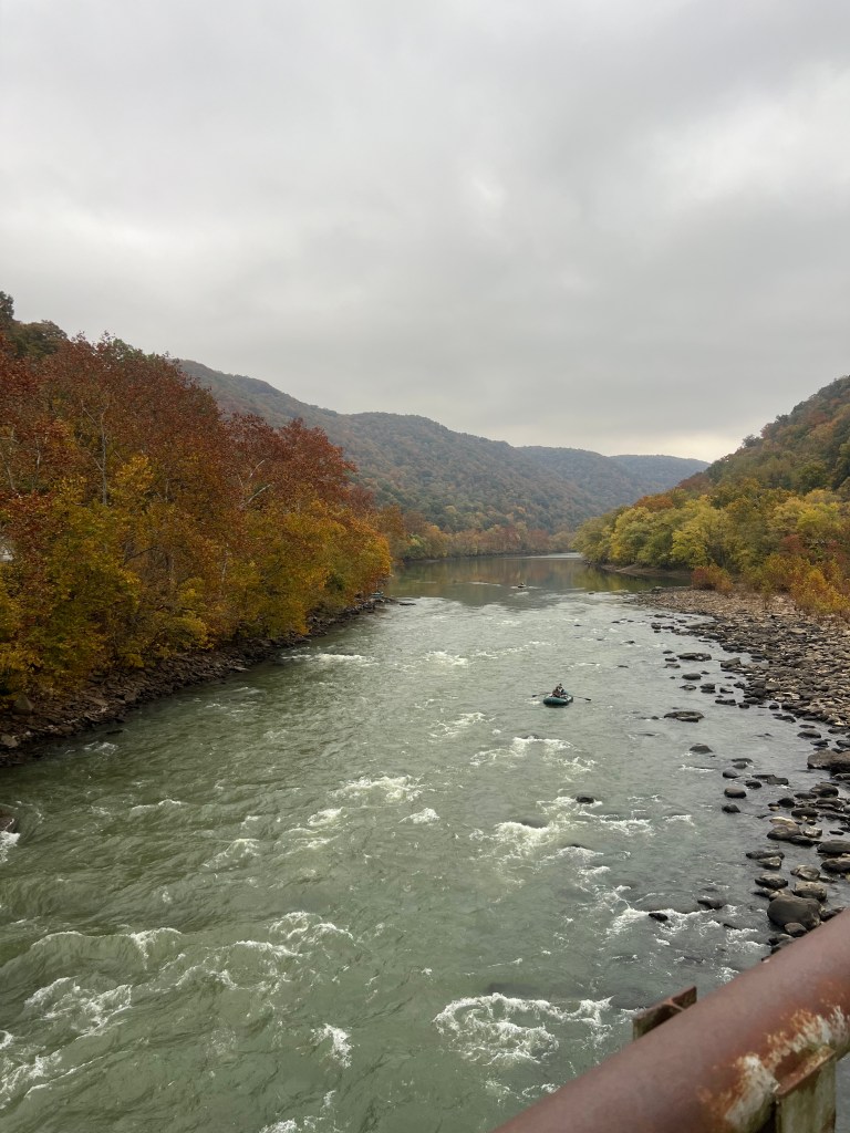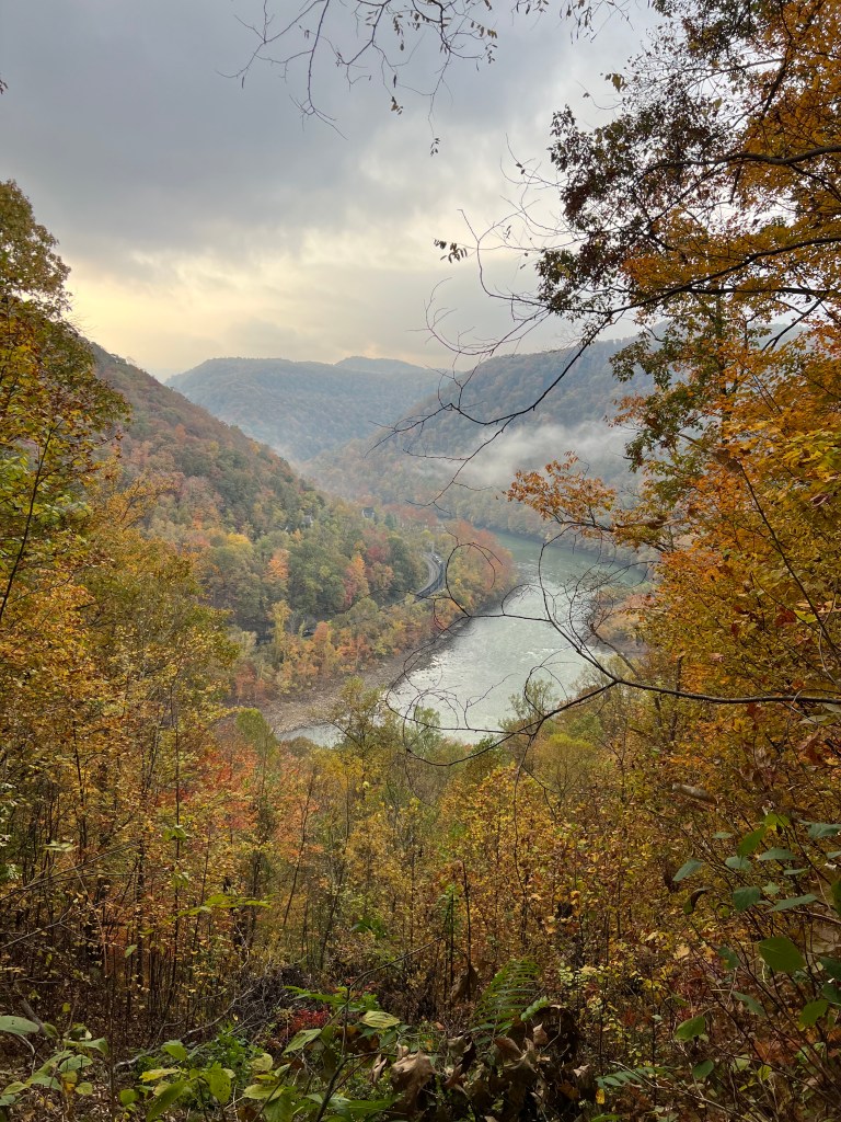 After the fall, Sarah and I ran to the next aid station together, Thurmond, where I met “Angel Andrea”. I needed help getting my chin squared away and one of the volunteers, Andrea, jumped in without hesitation. She washed my chin with soap and water, applied antibiotic ointment, steristrip and bandaid. Sarah headed on out while I finished getting patched up and situated. I’d eaten a ton to this point – it was actually a mistake. I’d forgotten that the food I picked up at the prior drop bag needed to last me THROUGH Thurmond and to the next Aid Station at mile 27ish, Cunard. I ate all my food going into Thurmond. Luckily I’d grabbed a few things from the aid station and had an extra mini bagel left in my pack so I made that work until Cunard. I don’t remember the mileage but somewhere along the way there was a young man playing banjo on the side of the trail. It was awesome! And he was good! It was hard not to stop and have a little listen for a while.